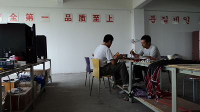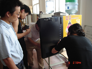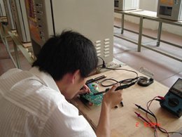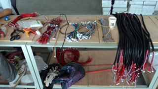 我厂车间接线台上,制作咖啡饮料售货机所用各种线路与接插头