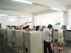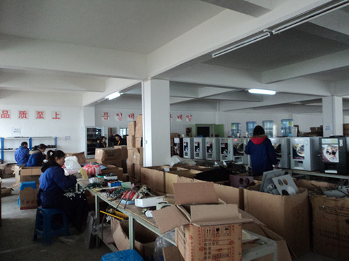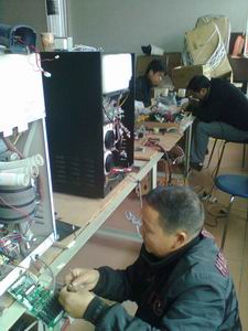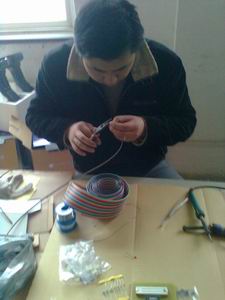 我厂车间接线台上,制作咖啡饮料售货机所用各种线路与接插头